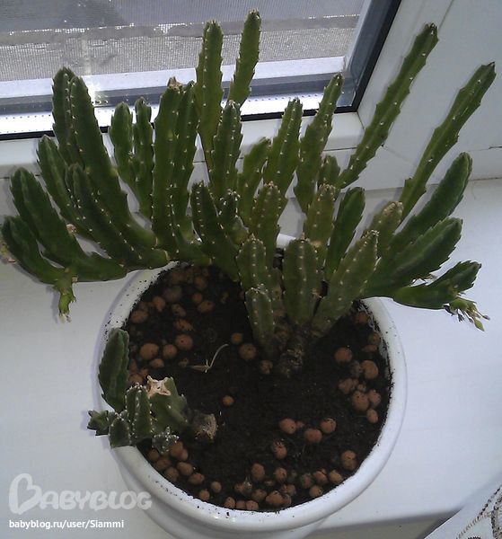 Детки хорошо укореняются, будут цвести на 4-5 год. Мой кактус первый раз зацвел, когда в три раза меньше был, чем сейчас. Если создавать зимой прохладу и засуху, то летом будет цвести обалденными цветками на палочке. Цветы раскрываются ночью и цветут около суток.