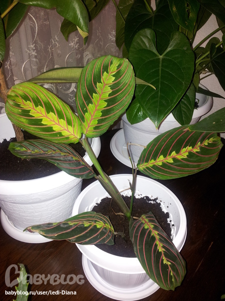 1. маранта триколор (любит свет, в темноте теряет свой окрас, достаточно неприхотлива, но у меня погибла почему то спустя полтора года жизни, и пережив 2 пересадки, кстати не очень она их переносит... думаю света не хватило и влажности воздуха)