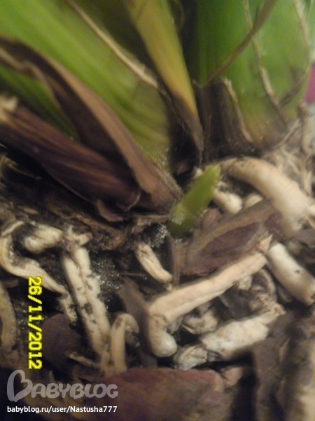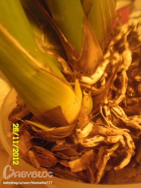 Я когда делила у него уже маленькие росточки были в грунте закопаны.... Всего росточков штук 6 вылезло...Вот теперь наблюдаю
