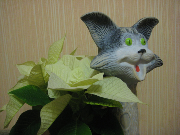 Пуансетия и горшок керамический "Кот"))