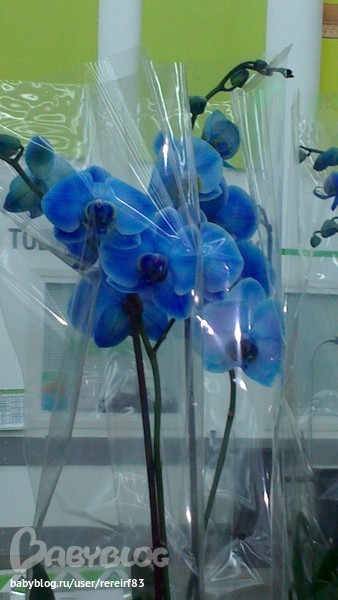 моей подруге парень подарил точно такую же красоту... она отцвела ...а новые цветочки-БЕЛЫЕ!!!!!ана пошла в магазаи ,спросила что ЭТО???и мы узнали ,что орха действительно была крашенная(что-то в воду для поливки добавляют).Теперь всегда она цветёт только белым((( Есть сорт орхидей ВАНДА вот они ДЕЙСТВИТЕЛЬНО и синие и оранжевые...но стоят дорого у нас 2500р!!!