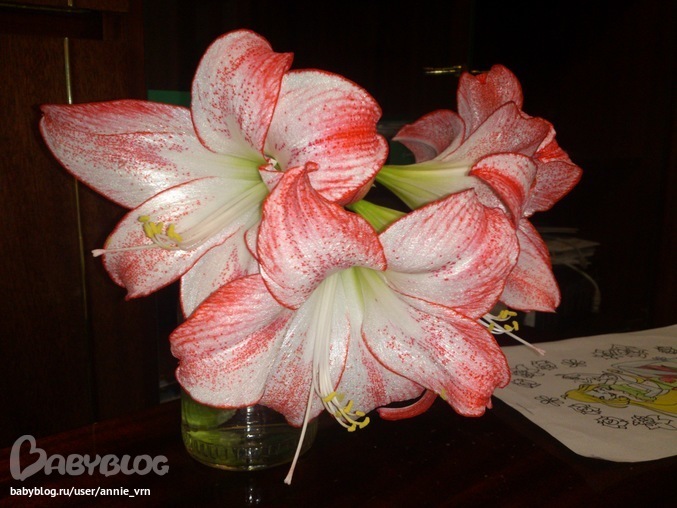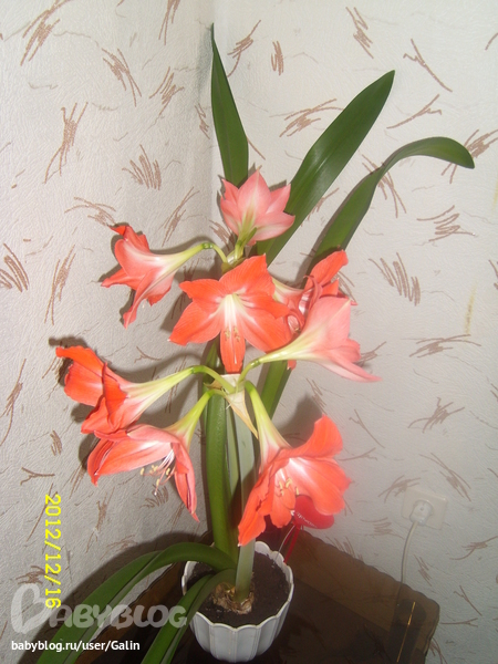 Он у меня уже года 4. Я его летом рассадила. вот он меня и порадовал. Самое главное чтобы горшок был не большой. от луковицы должно быть сантиметра 2 до горшка, тогда он будет цвести.