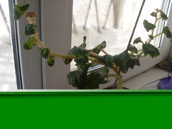 а что с ним не так? вполне стандартная картина для бегонии зимой при недостаточном освещении. Моя выгледет также, ближе к весне укорею черенки и летом они уже будут цвести.