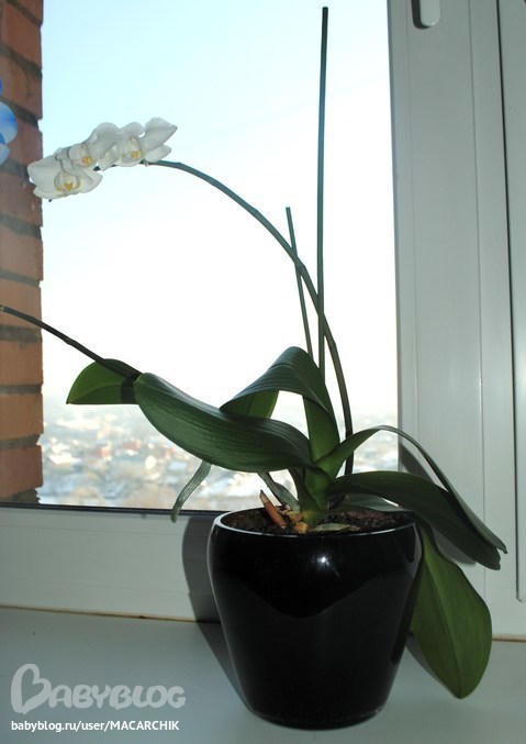Полив по мере просыхания коры и корней. Корни должны стать серебристого цвета, а кора полностью сухая. Помните, не любят перелив! Поливать можно из под душа теплой водой в течение 10-15 минут, я обычно в таз теплой воды наливаю и ставлю туда на пять минут. Вода не должна попадать на шейку (там где листики начинаются) и в пазухи листьев. Если попала, соберите воду туалетной буагой или салфеткой. Иначе загниет шейка, а это хана цветку.