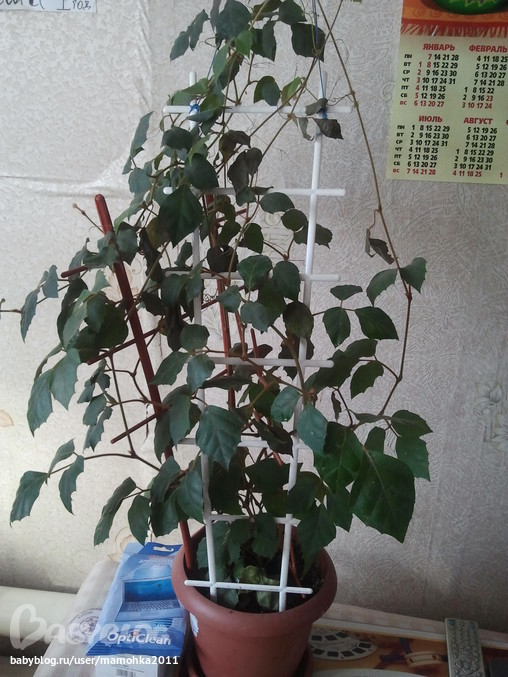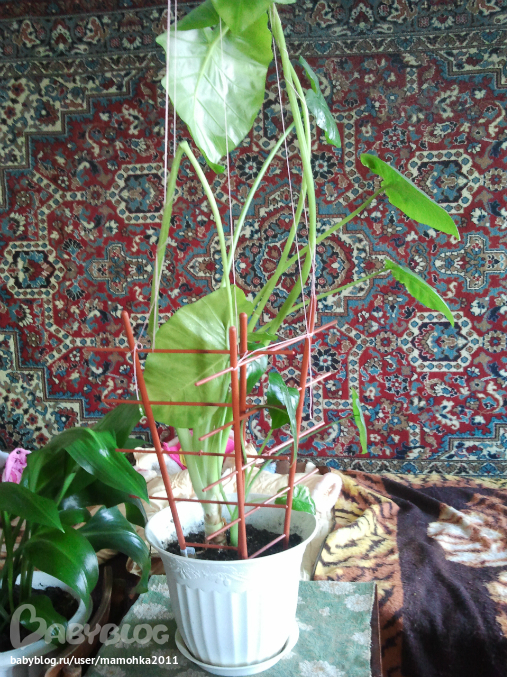 палочка не в горшке,это кажется просто так)))) а поднялся он сам вверх,по стене.