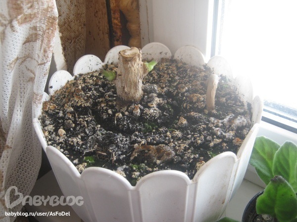это я отслеживаю как растет драцена. У мамы забрала пенечек с корнями (у нее драцена сильно кривая и страшная была, она ее решила подрехтовать, а корневище выбросить -я пожалела и забрала), пересадила в больший горшок и свежую землю и вот результат. Ранее как то не сильно болела по драценам, а эта вот полюбилась))) надеюсь взаимно это у нас будет.