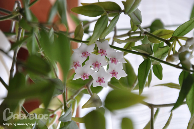 Это Хойя, цветочки у нее как искусственные, напоминают мне красивые бусины, очень четкие и правильные:)