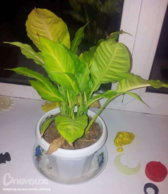 SOS! Помогите цветику!Девочки, помогите! Спатифилум вянет и желтеет после пересадки, вот уже почти пол года((( Думала оклеймается - и никак. Мне подарили, и он у меня целый год был без пересадки, цвел 2 раза аж, листья наливные. И что самое интересное - после пересадки все живые цветы, которые мне дарит муж и 2ух дней не стоят - вянут и сохнут! Что делать?
