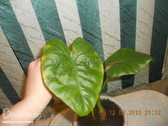 Алоказии нужна очень рыхлая почва - добавьте в субстрат перлита побольше, измельченного мха сфагнума. Не ставьте на сквозняк и под палящие солнечные лучи. И, возможно, горшок ей маловат, она любит высокие горшки (но подбирать все равно нужно по размеру корневой системы).
