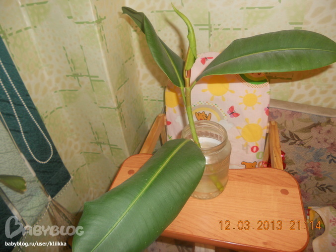 и вот мне ещё дали метровый отросток фикуса,но я его укоротила.Что-то он мне не очень нравиться,хочу цветущие цветы.
