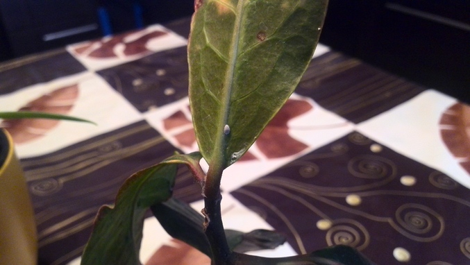 SOS! Помогите цветику!Цветок купила как будто уже больной, пересадила в хорошую почву... а онвсе чахнет и чахнет. Пару дней назадобнаружила на немжучка, белого лохматого... и на обр.стороне листьев как будто пятна пушистые. Само растение спасти ещеможно? Что за вредитель на него напал? Сейчас оно на карантине на др.подоконнике,вдруг зараза переберется... ну и фото.