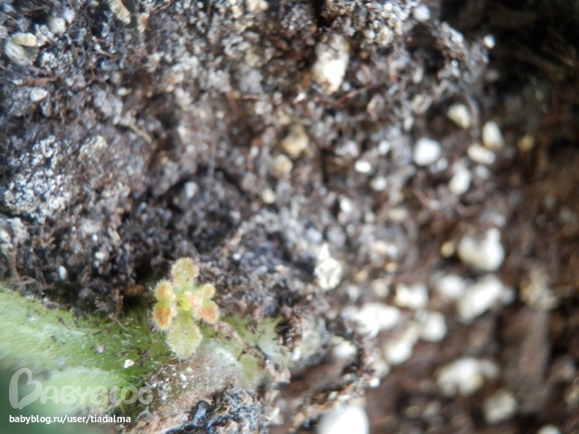 Самые большие листы - это я оставила с обрезки, а маленькие - уже нарастили сами. Давайте взглянем поподробнее. У той, что слева вот такая очаровательная розеточка, которая нарастит листья и зацветет