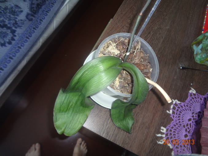 Ура! вчера обратила внимание что при общем фоне состояние листочков не изменилось, но сбоку показался какой то расточек, мож новый корешок может стрелку пускает пока не знаю, но вроде как оживает красота моя!