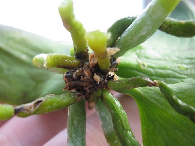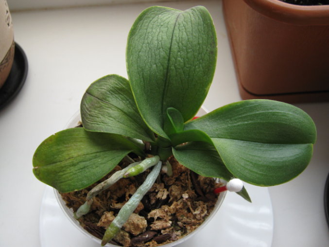 ОрхидеиМоя многострадальная мини орхидея, которая казалось бы собралась помирать, отцвела, засох цветонос (я его срезала) потом персадила в большую емкость и орха замерла на несколько месяцев (я думала или привыкает к новому месту после пересадки или умирает...). корней почти не было. Относительн недавно я поставила ее на южное окно и о чудо- начало расти что то (как позже поняла корни) как совсем новые, так и свеженькие на казалось бы умерших засохших. Даже новый листик появился.