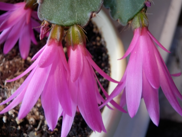 3. Розовый, на самом деое он ярко-розовый, так как у меня еще есть нежно-розовый рипсалис, который, видимо, решил в этом году не цвести, бутонов пока не предвидется. Впрочем и оранжевый рипсалис стоит без бутонов