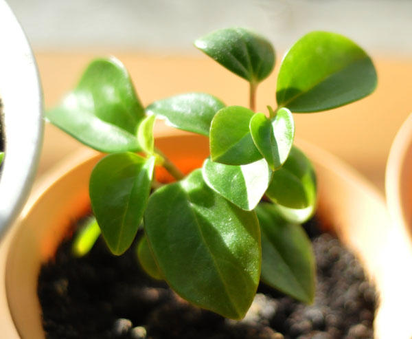 симпотяга! у меня тоже в августе того года появилась веточка из 3-4х листиков переперомии (только сорт чуть иной)- так сейчас ТАКАЯ уже разрослась! Причем веточку взяла у мамы, а на моей листья раза в 2 больше чем на ее теперь -стоит на северном окне и прет как на дрожжах тьфу тьфу)))