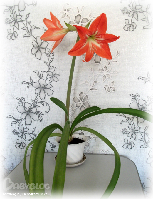 Гиппеаструм!!!Моя гордость и радость)))Цветет впервые.Подруга этой зимой хотела его выбросить,потому что у нее сидел 3 года и не придавал признаков цветения.Даже листь не хотели расти.А я его забрала и приютила)))