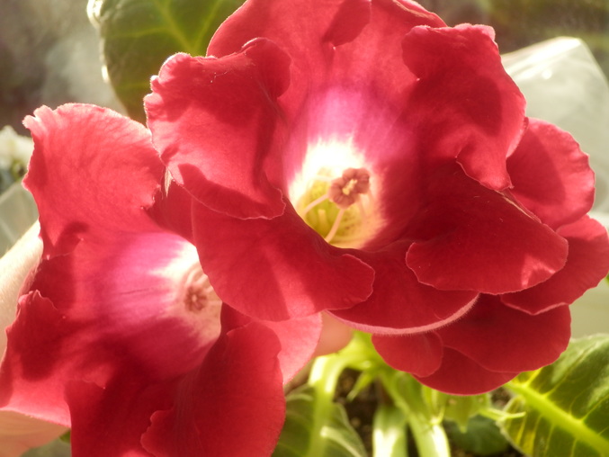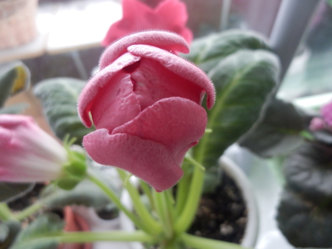 Распускается обычная красная глоксиния) Ей не удивишь никого, но все равно она прелестная.