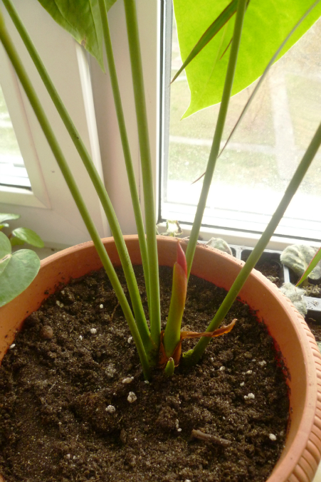 А это сумашедший антуриум опять выпускает цветок! причем еще предыдущий не оцвел