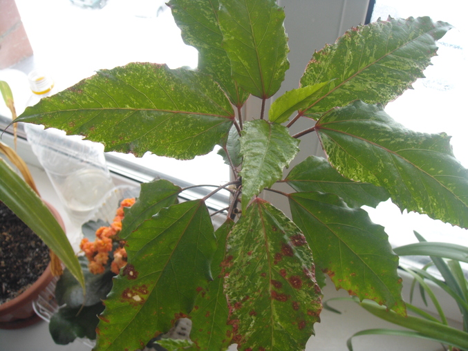 спасибо что откликнулись.от грибка лечила- не помогло.вся пятнистая листва опала,остались только не зараженные листочки на макушке.недели 2 все было хорошо,он даже бутоны набрал,расцвел.а сейчас опять на листиках пятна появились.паутинок нигде нет,живности никакой не видно....