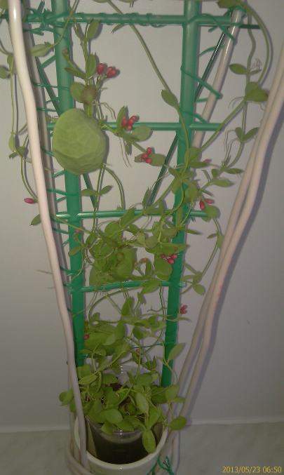 Вот сама конструкция уже без вазы... горшочек очень маленький (корней у этого растения практичечски нет, зато много воздушных корней)... это эпифит , живет а деревьях...вроде родина этого растения Филипины и Индия... Интересно это растение тем, что образует два вида листьев - обычные и листья "шары"