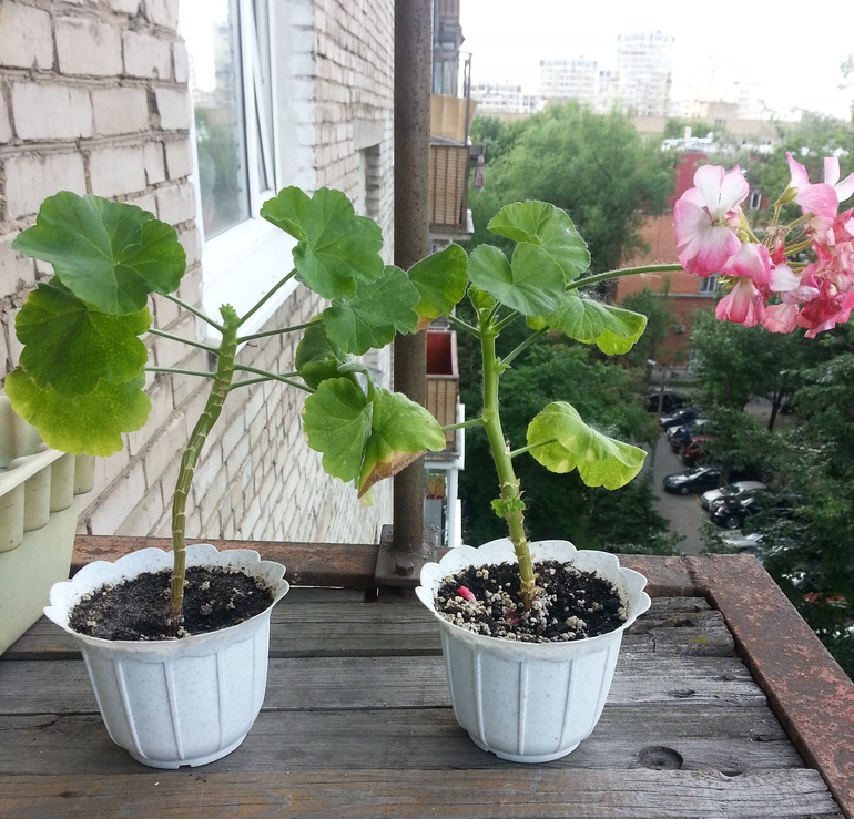 Вот они подросли - обратите внимание, внизу стебель тонюсенький, а к верху утолщается)) Подозреваю, что герани несколько иначе должны выглядеть)) Руки чешутся отрезать их в том месте, где заканчивается тонкий тонкий ствол и начинается толстый, но чет очкую) Как бы вы поступили, гераниеводы и пеларгониеведы?))