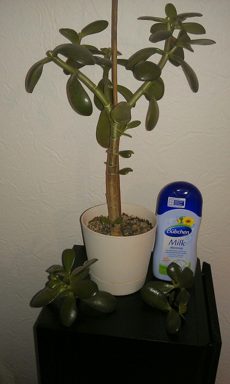 Кактусы/суккулентыДевочки, деревце с детства подвязано к палочке, тк заваливалось не раз. Жду, когда ствол помощнее нарастим, тогда отвяжу))) Летом прищипнула, где было возможно. Не сильно еще разветвилось, но вот))) А вопрос такой - не надо чикнуть левую ветку - мне кажется, она тяжеловата.