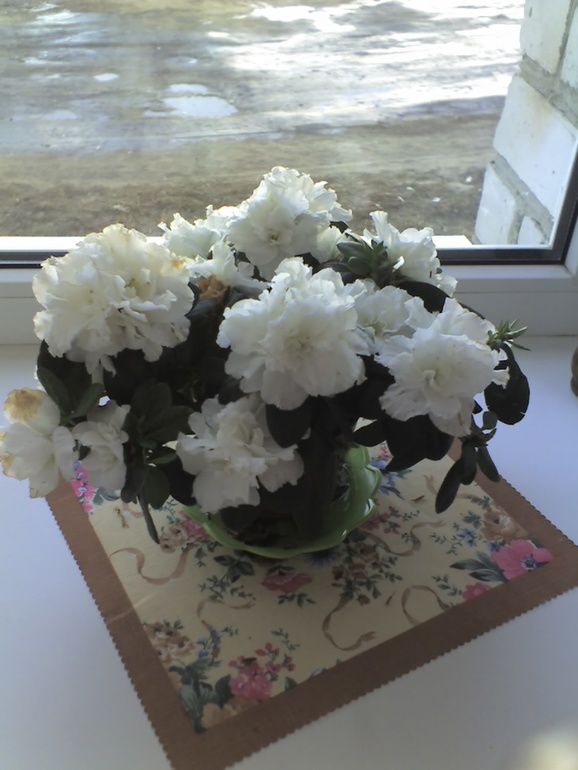 Моя мечта-белая азалия! Здесь Валечка как то пост создала-Хотелки.Я особо в чудеса не верю,но частично моя хотелка сбылась. Спустя 2 дня мне отдали азалию,но не белую,а красную,причем,так не ожидао,соседка принесла,т.к.у нее аллергия.