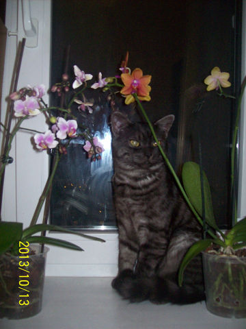 а вот эти орхи может тоже сортовые? Подскажите? По моему оранжевый похож формой на ваш?Кот позирует)))
