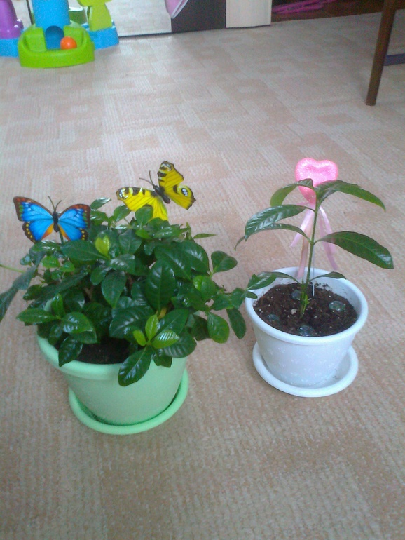 А это мама и дочка Гордении, дочку тоже хочу вырастить с кроной в виде шара