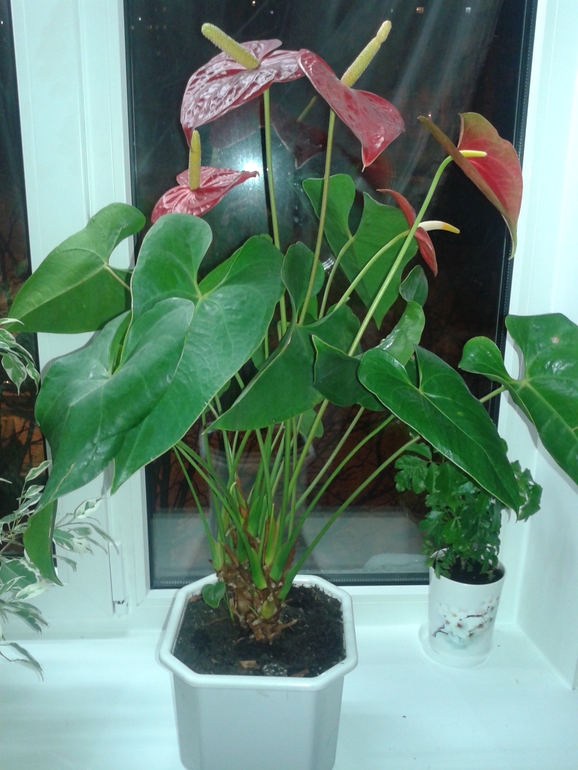 С Вашего весной можно отделить аккуратно те отростки которые подросли и имеют воздушные корни))) а малявку оставить в покое, пусть растет для пышностиЯ хочу фиолетовый антуриум