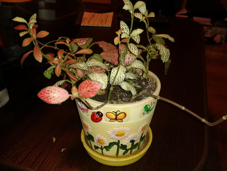 а у меня именно этот цвет фитонии(у меня их 3 в одном горшке) сам очень хорошо кустится...ни разу не прищипывала..