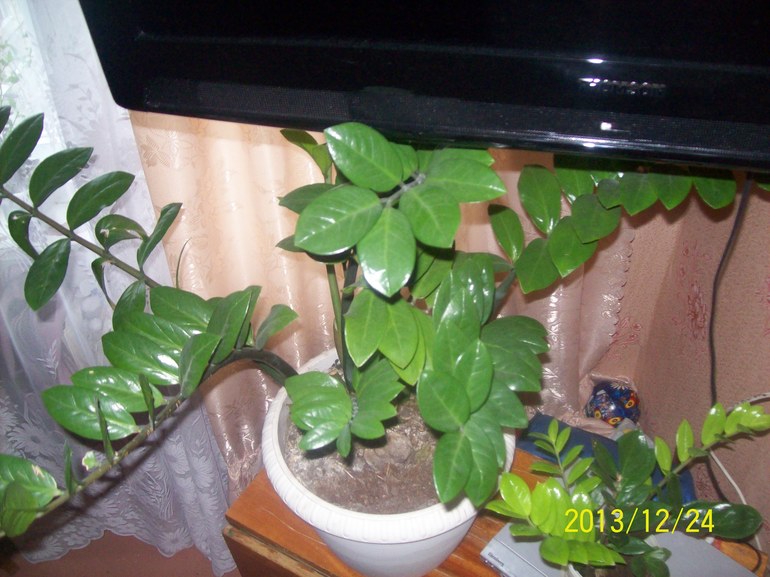 Это замиокулькас. Он любит низенькие, широкие горшочки. Грунт можно использовать универсальный, дренаж обязательно! t воздуха 17-20 градусов. Опрыскивать нельзя! Просто периодически протирайте влажной тряпкой. Любит много света, но недопускайте попадание прямых солнечных лучей. Не знаю как он на наличие болезней. Советую р-р гетероауксина для профилактики. Я у бабушки в такой же забрала. Сейчас в прекрасном состоянии! Даже новые побеги пустил!