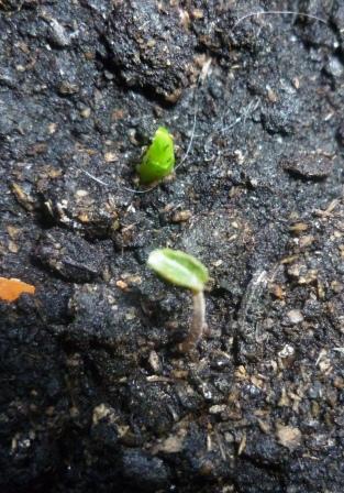 светлый треугольник-это нолина)))а вот что рядом растет непонятно))) их в горшке 2, но вторая только проклюнулась