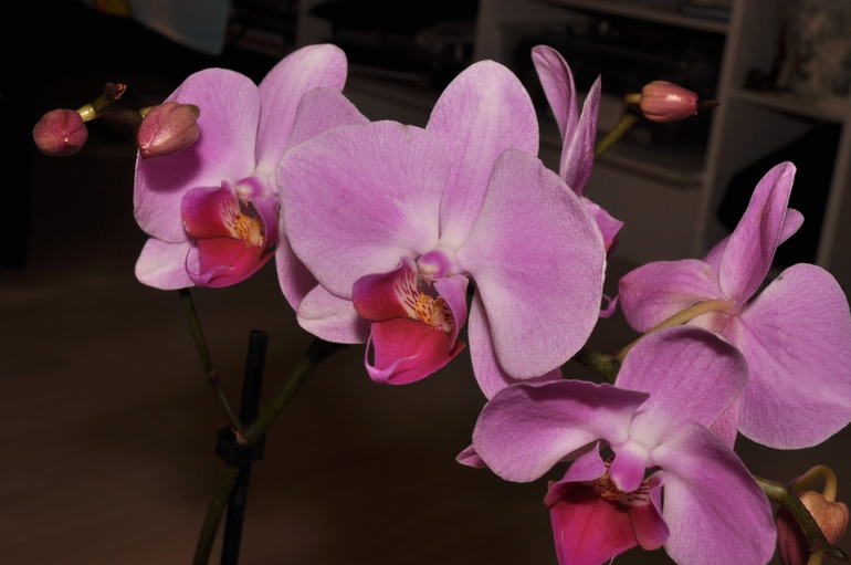 Орхидеи любят западную и восточную стороны. На южной нужно притнять, чтобы листья не обгорели. Мои живут на южных окнах, но днем я зашториваю окна ролл-шторами. А тень ни одго растение не любит, могут быть теневыносливые, но именно тенелюбивых нет.