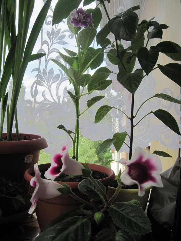 Фиалки/ГлоксинииВовремя не вытащили горшки из тени, поэтому вытянулись очень сильно, а цветочки маленькие, но мне очень нравится, потому что глоксинии обычные я не очень люблю