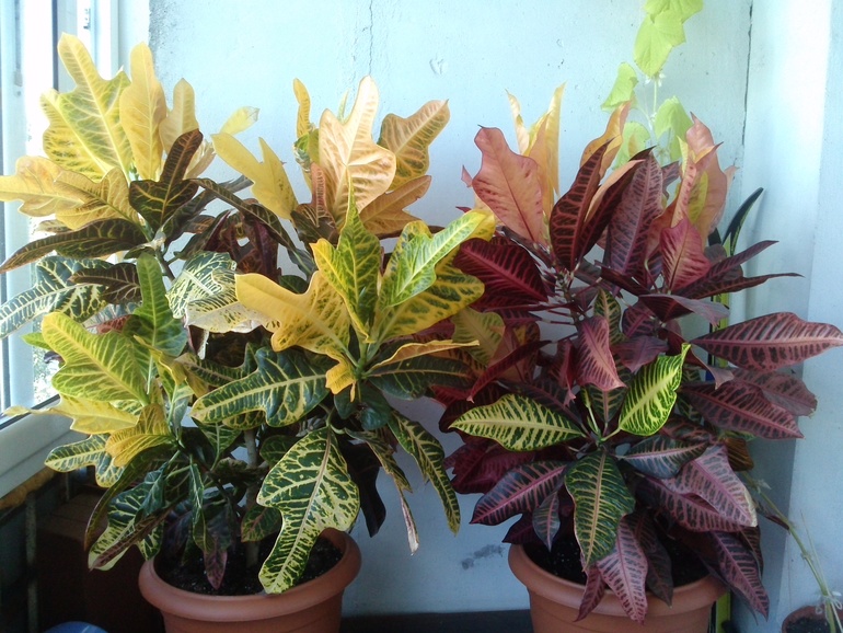 Здравствуйте. Кротоны иногда обрезаю, она дают побеги с боку. У меня сейчас тот,что справа на фото вообще полностью обрезанный, весной полностью листья опали, хотела выкинуть, сейчас опять листочки дал.