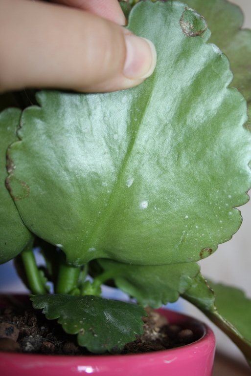 ничем не лечить, у Вас здоровое растение, а пятна эти образуются от сока растения. Повредился листик или слишком много полили — выделился сок и засох.