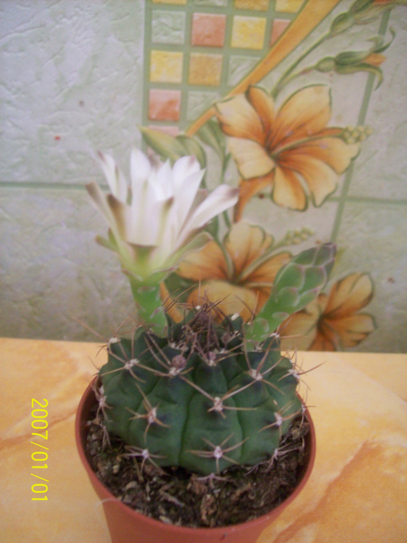 Кактусы/суккулентыВ продолжении моего вчерашнего поста, про кактус. Он расцвел, как и предполо=агали многие он беленький, кончики лепестков коричневые)