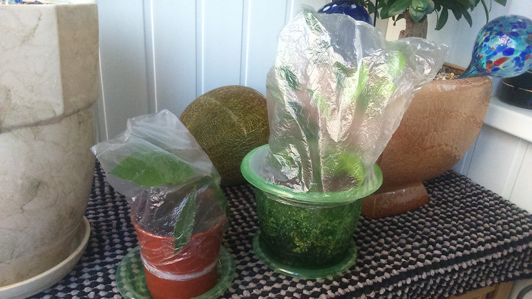 Сажаем on-lineПо рекомендованной схеме укоренения пробую в очередной раз укоренить Лавр, а также Фикус (неопознанный до сих пор).