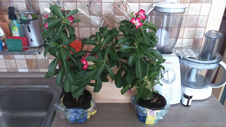 Купила АЖ ДВА Адениума. С жадности видимо))) Не устояла, т.к. они по 300 рэ и не обрубленные в этот раз были. Обычно они все какие-то обстриженные и с кучей пней. В этот раз жирные, целенькие, ветвистые)