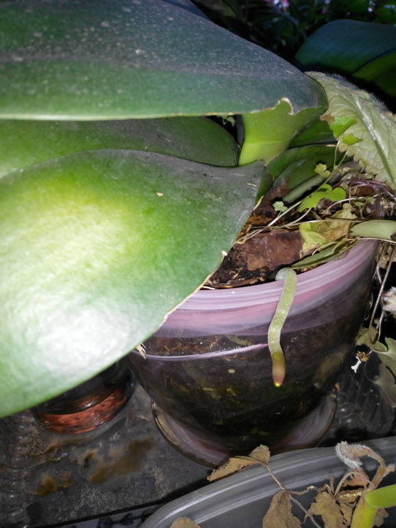 В горшке есть отверстия.Это не сорняки, это моя любимая цимбалярия!Не залита, корни в хорошем состоянии, так можно про все орхи сказать, цветут- агония, деток дают-агония.Я люблю и флору и фауну, никого не мучаю. Орхи у меня давно,поначалу мне даже не понравились стеклянные горшки, теперь нравятся, Орхи в них не переувлажняются и не пересыхают, прям как в природе.Я бы и дерево посадила, пусть цепляется, да места маловато для такого размаха.Надеюсь эта "предсмертная агония" ещё не раз повторится).Мне у вас дипладении понравились, красивые!