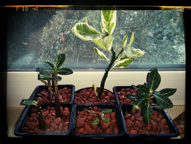 Мои задохлики Адениумы и вариегатный Педилантус.