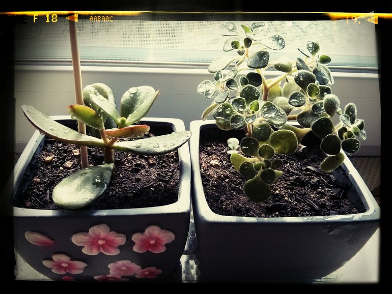Денежное и семейное "деревья" :) а долларовое продолжает испытывать моё терпение, так и торчат без движения листочки в земле...