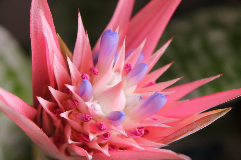 она когда все силы отдаст свои у деток корешки появятся.Но у них корни не для питания,как у всех цветов,а для опоры.Тогда они аккуратно отделяются и отсаживаются.А мама погибает.Вообще эхмея дает по 2-3 детки и остается жить еще.В свою очередь эти детки года через 2 зацветают и дают своих деток....Так может быть много лет.Но цветут один раз только