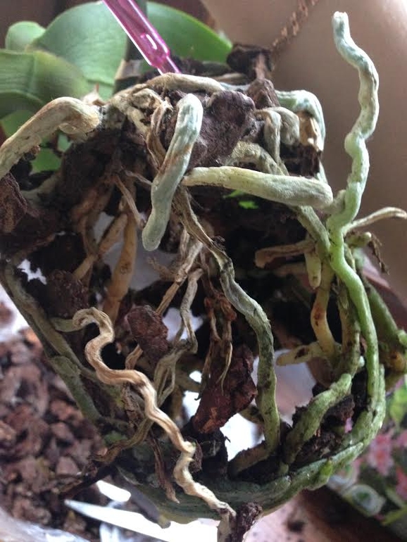 ОрхидеиРешила пересадить орхидею,что-то стала она чахнуть.Достав из горшка увидела такие корни. Есть ли шансы у орхидеи?