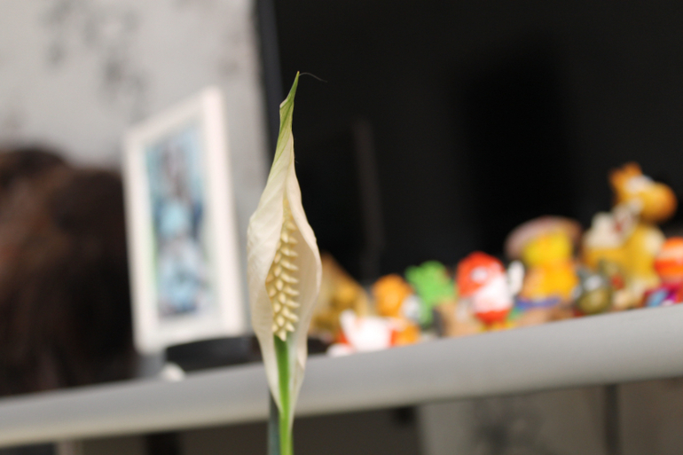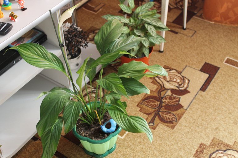 А это бедолага Спатик. Он медом намазн для детей и для кошки.. Все никак не нарастит себе листву(((Дети отламывают листья все врем. А тут еще и цветонос кошка согнула.