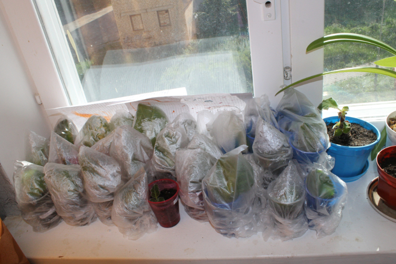 Один листок дал детку и я его срезала и снова отправила "работать". Разрезала по жилке вдоль и в коробочку. Должен дать около 14 деток!!! Это эксперимент. Хочу проверить, так ли это