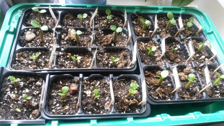 ХвастушкиПохвастаюсь своим посевом. Семена сажала неделю назад. Взошли и растут быстро. Сажала все по науке, почва, температура, освещение. Результатом довольна. Погибла только одна или две семечки. Есть семки-тугодумы штуки три, которым пришлось помогать вылупляться, они вот только корешок дали.