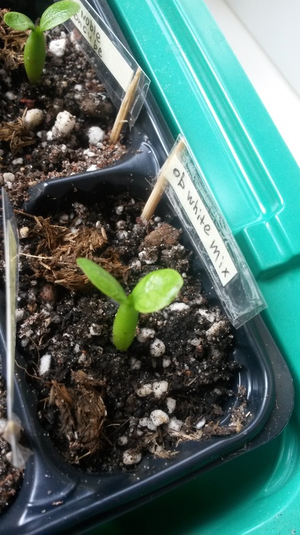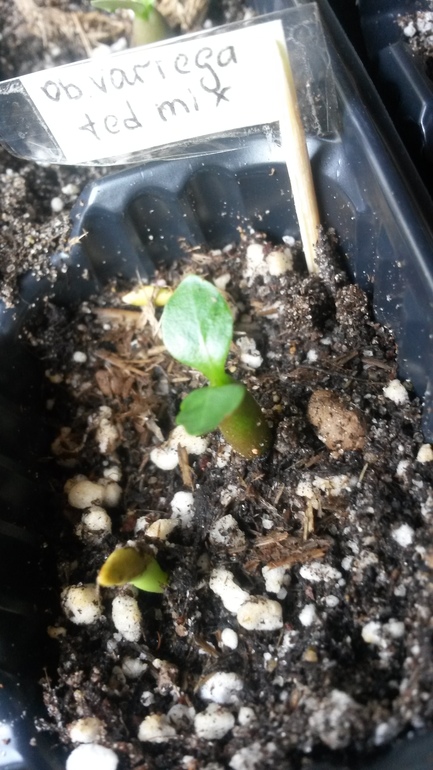 Единственный белый, было три семечки, одно подарила, два посадила, взошло только одно. Листики уже отличаются от остальных адешек. Неужели и правда белый будет?